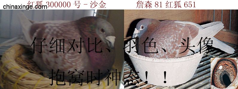 注 注:本舍決定將10年前所有種鴿全部清棚、本舍考慮再三、才把“紅狐300000”獻出、本鴿隨然是10歲種鴿、但是肌肉、骨骼、羽質(zhì)、身材、頭像、綜合狀態(tài)非常好、為慶祝本鴿家族的輝煌、為紀(jì)念紅狐731的出色表現(xiàn)、本場拍賣會特定于{7月31日23:00.00時結(jié)拍}7.31紅狐家族、傳奇家族、卓越賽鴿、可遇不可求。!