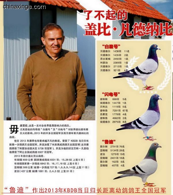 2013年大中距離國家賽成鴿KBDB鴿王10名【400-550km】 2013年“戈馬力”亞精頓CFW聯(lián)合賽冠軍