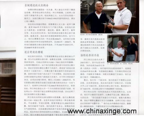 如果你想在德國(guó)找一對(duì)夫妻,兩人皆全天專職于賽鴿運(yùn)動(dòng)者,那非哈拉特與烏蘇拉?阿蘭特莫屬。之前兩人皆任職于奔馳汽車公司,哈拉特是工頭,太太烏蘇拉則是一般員工;當(dāng)他們倆分別于1994及1995年提早退休后,便全心投入賽鴿。