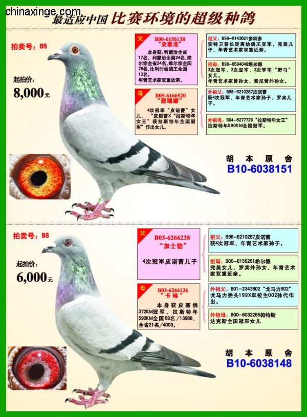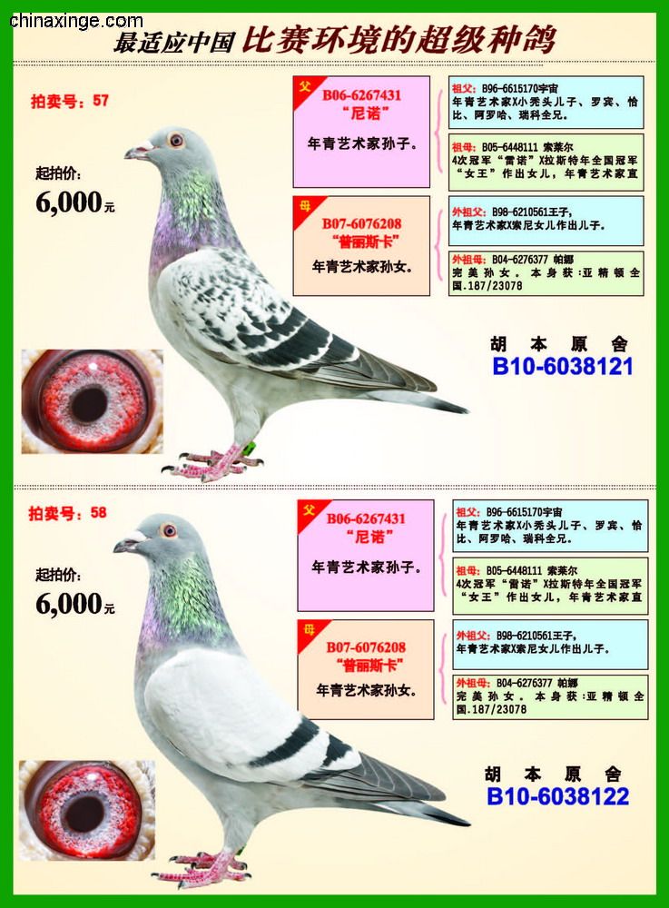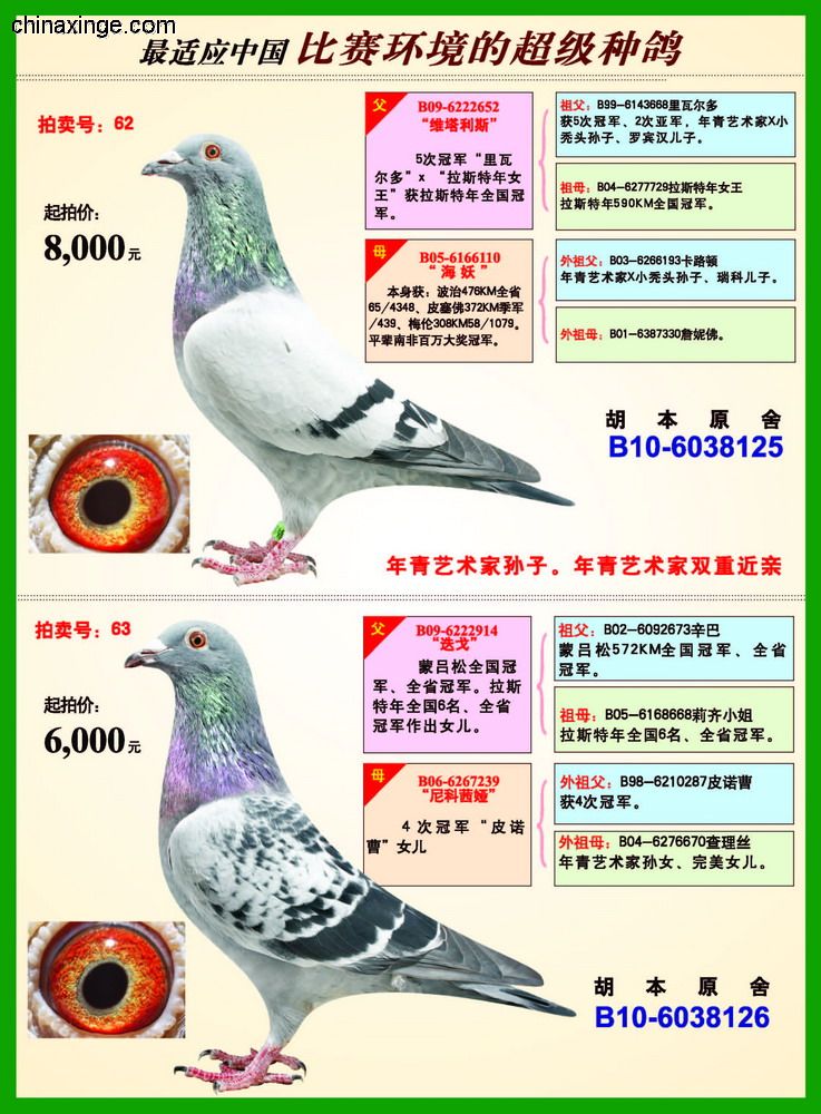 鴿界三巨頭聯(lián)合拍賣會(huì)(二)胡本原舍58羽,電腦戈馬力原舍23,僑斯·佛卡門原舍37羽