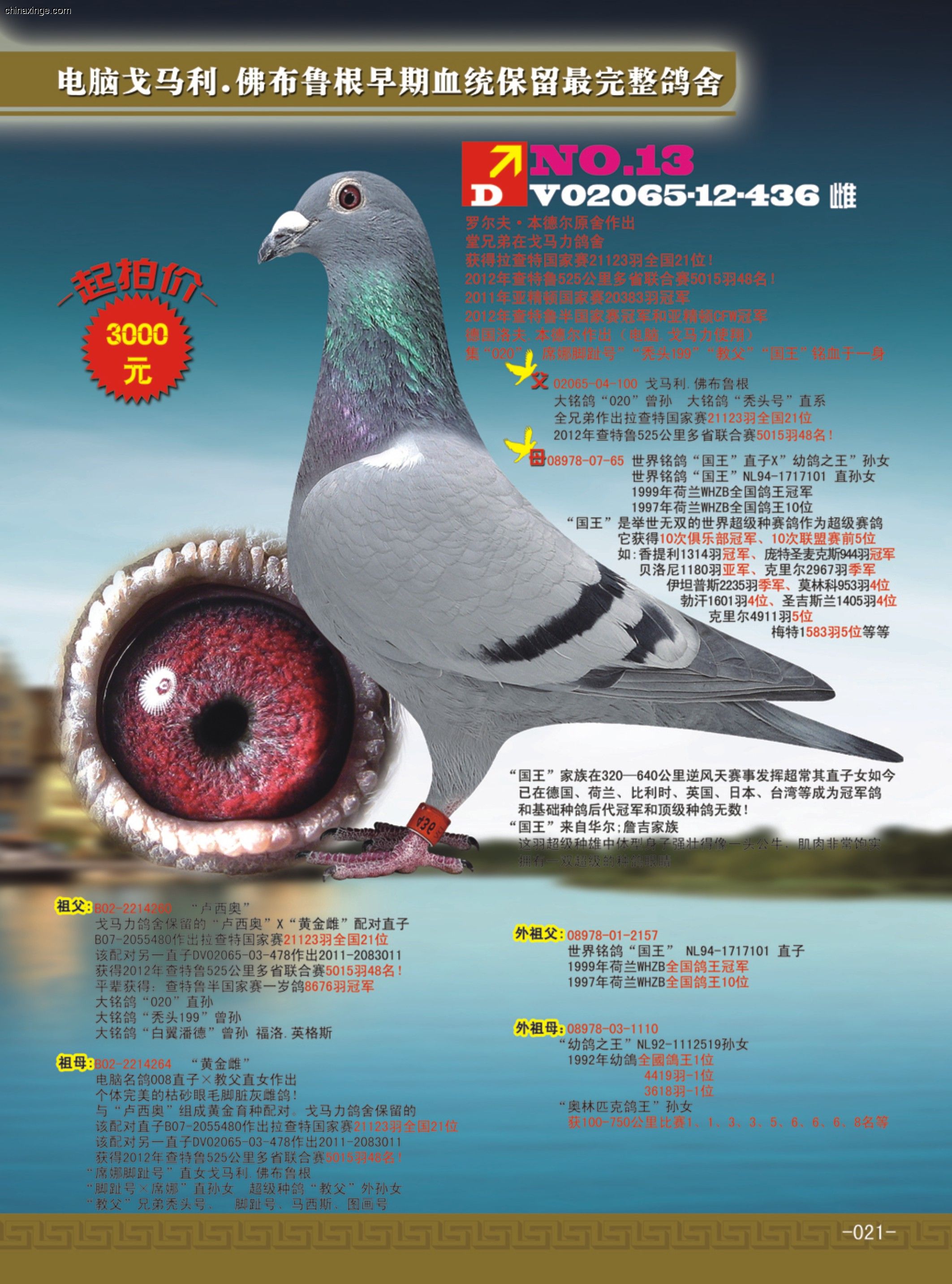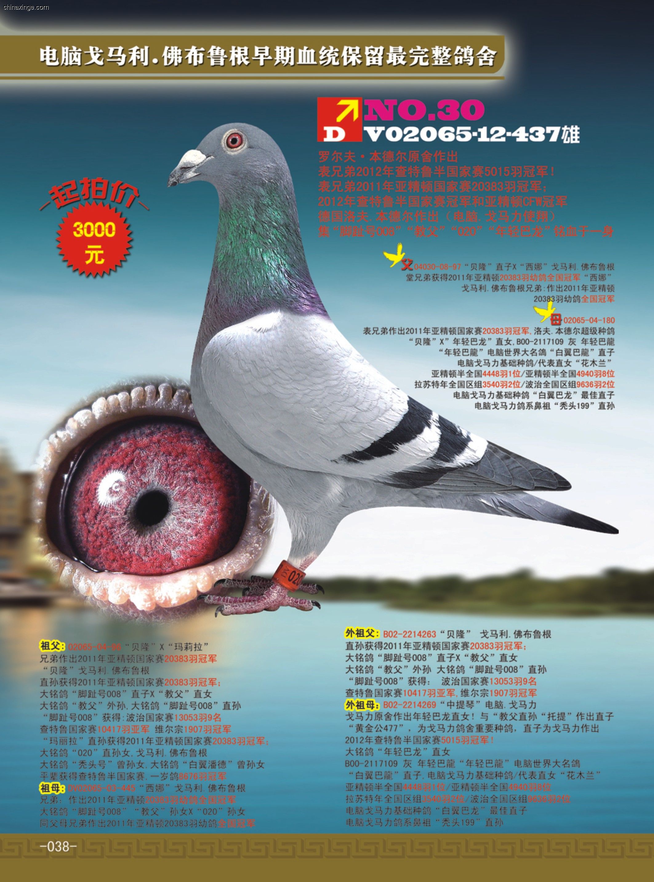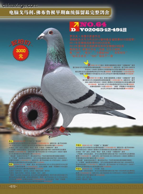 電腦戈馬力原舍最頂級種鴿及當今最高輩分種鴿,純正的血統(tǒng)每羽都將會成為立棚的基礎(chǔ)種鴿:大銘鴿“禿頭199”直孫、大銘鴿“020”直孫、大銘鴿“教父”直孫、大銘鴿“巴龍?zhí)枴敝毕、大銘鴿“花木蘭”直系。。。。。。