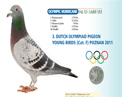 25年萊邦納723公里全國(guó)一歲鴿3884羽35名,全國(guó)大區(qū)一歲鴿31名,瓦隆大區(qū)一歲鴿冠軍,省一歲鴿冠軍