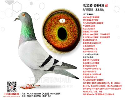 NL2025-1589297 同父兄妹賽績: WHZB幼鴿王全國冠軍 SS中距離幼鴿王冠軍 PIPA排行榜幼鴿王全國亞軍 AFDS幼鴿王亞軍 莫倫1210羽冠軍 國家賽區(qū)8893羽亞軍 基耶夫蘭5000羽冠軍,27343羽亞軍 尼爾尼斯4647羽殿軍,25125羽殿軍
