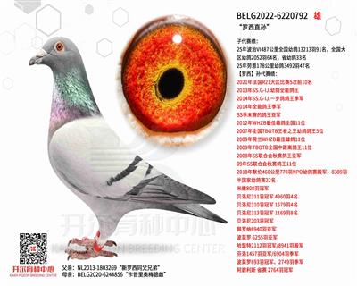 BELG2022-6220792 子代賽績: 25年波治VI487公里全國幼鴿13213羽91名,全國大區(qū)幼鴿2052羽64名,省幼鴿33名 25年勞恩178公里幼鴿3492羽47名