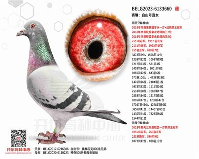 BELG2023-6133660 同父兄妹賽績(jī): 2019年帝恩來(lái)聯(lián)盟拿永一歲+成鴿鴿王冠軍 2018年帝恩聯(lián)盟拿永幼鴿鴿王7位 2018 年帝恩聯(lián)盟拿永幼鴿鴿王8位 255 羽冠軍,1957 羽亞軍 2111羽冠軍,1923羽亞軍