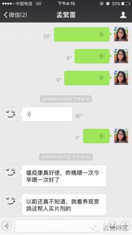 近期,西安搏冠業(yè)務(wù)人員接到天津鴿友、遼寧鴿友及我們的經(jīng)銷商客戶的反饋信息,反映我們的瘟疫康產(chǎn)品,針對(duì)鴿子嗉囊積氣積食方面的疾病效果顯著。特此我們將該客戶反饋的具體詳情告知各位鴿友,希望鴿友遇到類似的鴿病得以借鑒,選擇西安搏冠瘟疫康,讓您的愛鴿恢復(fù)健康,做鴿藥,我們是認(rèn)真的!