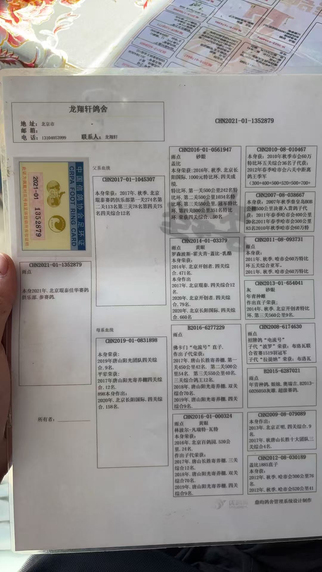 此鴿父母都是國內(nèi)一線寄養(yǎng)棚的前十名