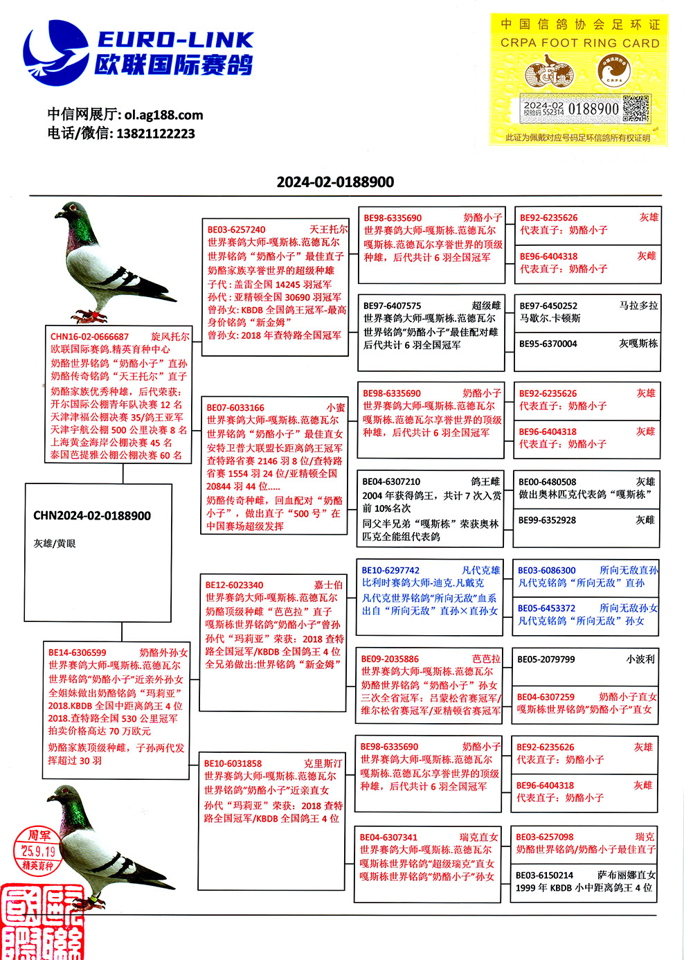 1596358 | 世界銘鴿“保時捷911”最高代近親 | ¥3900元 | 4次 |
