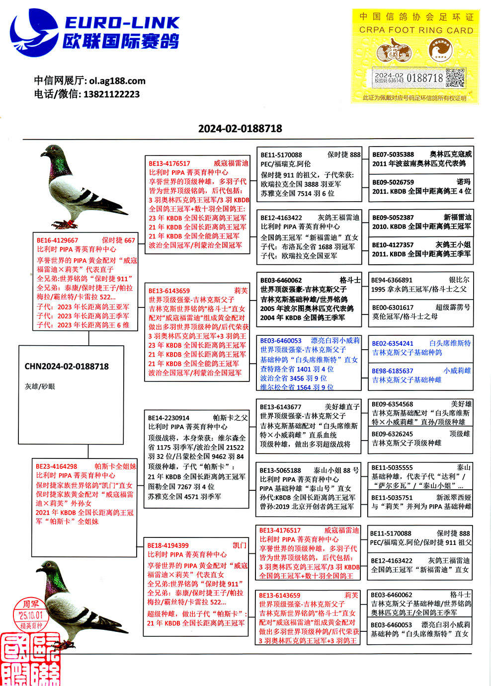 1596360 | 世界銘鴿“最佳基特爾”家族完美組合 | ¥4800元 | 7次 |