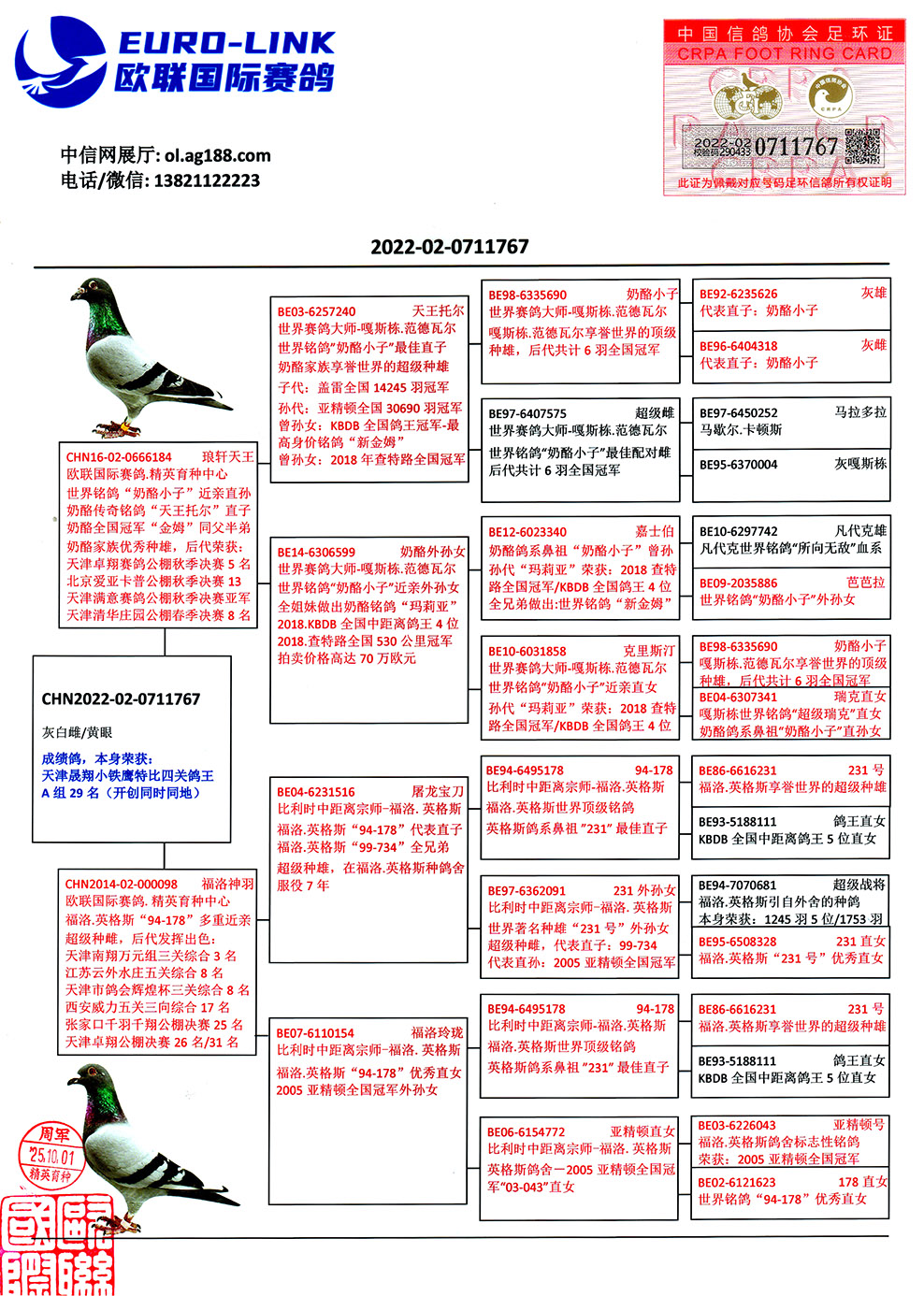 1596360 | 世界銘鴿“最佳基特爾”家族完美組合 | ¥4800元 | 7次 |