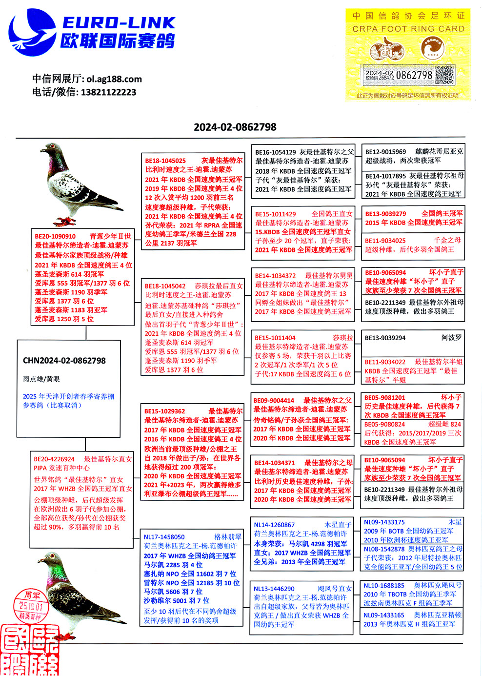 - 當前查看拍賣鴿:世界銘鴿“最佳基特爾”家族完美組合