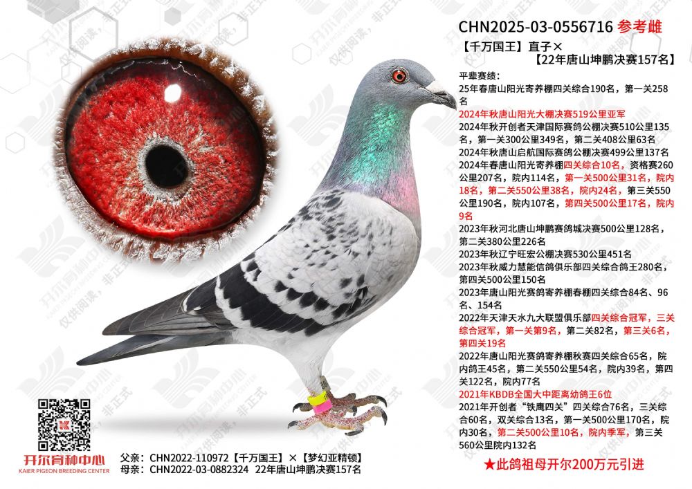 1596586 | 21年俱樂部綜合鴿王54名×20年開爾青年隊(duì)決賽亞軍直女 | ¥1000元 | 1次 |