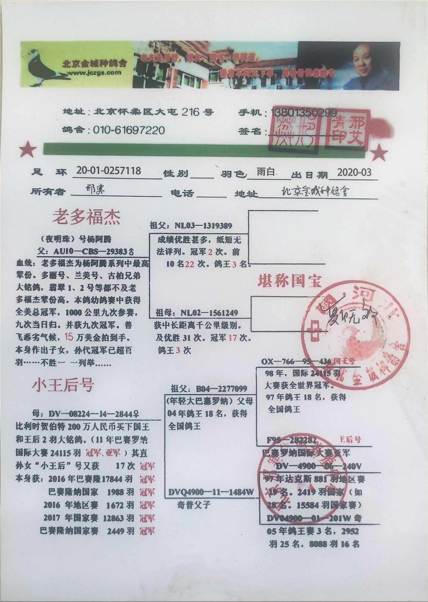 有血統(tǒng)書的隨鴿發(fā)出,沒有上傳血統(tǒng)書,就是沒有已經(jīng)丟失,介意勿拍!