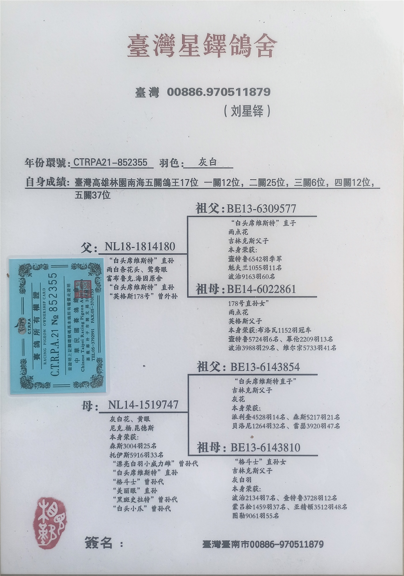 有血統(tǒng)書的隨鴿發(fā)出,沒有上傳血統(tǒng)書,就是沒有已經(jīng)丟失,介意勿拍!