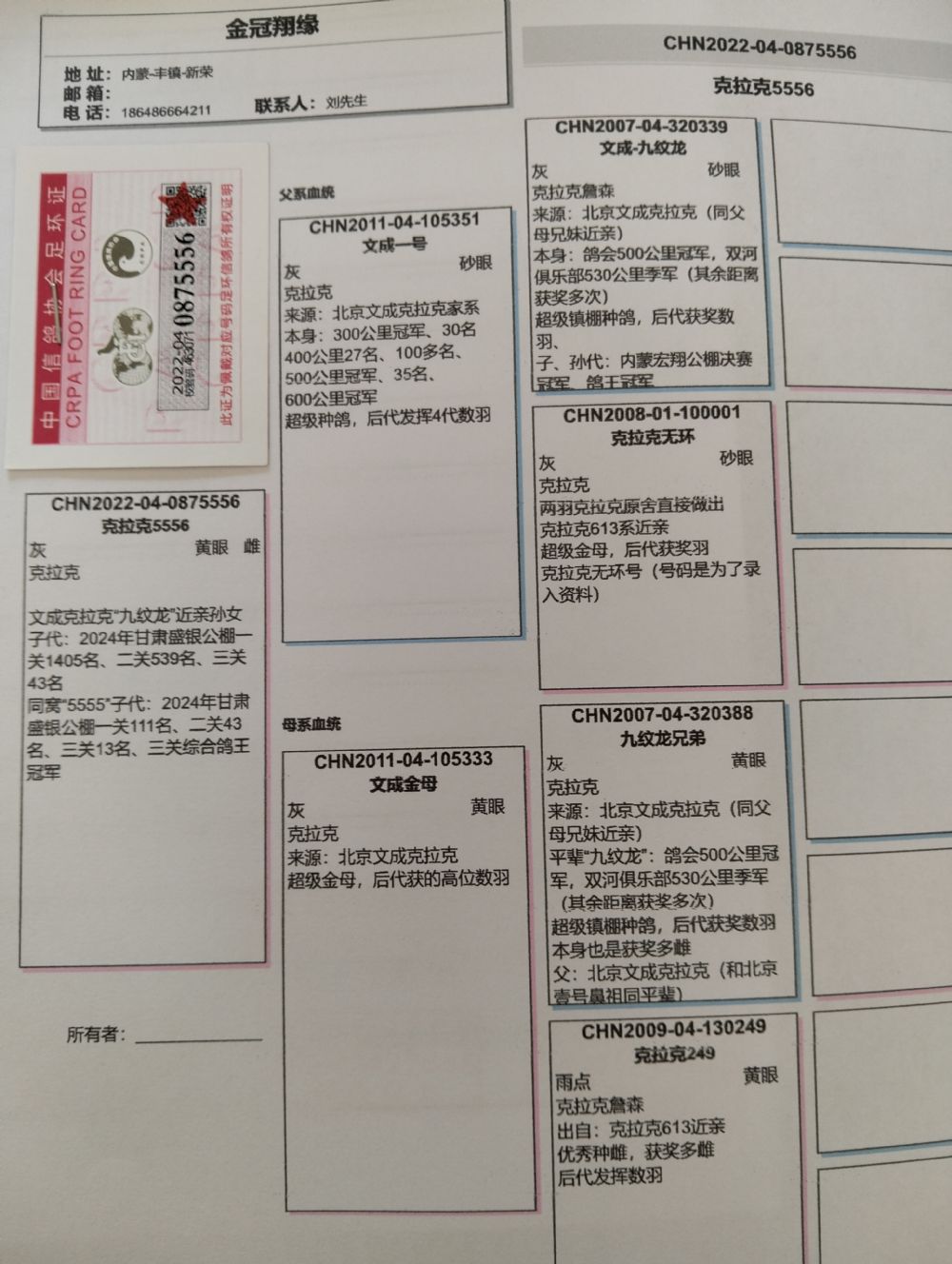 1597107 | 20-文成克拉克+公棚冠軍父女近親 | ¥200元 | 2次 |