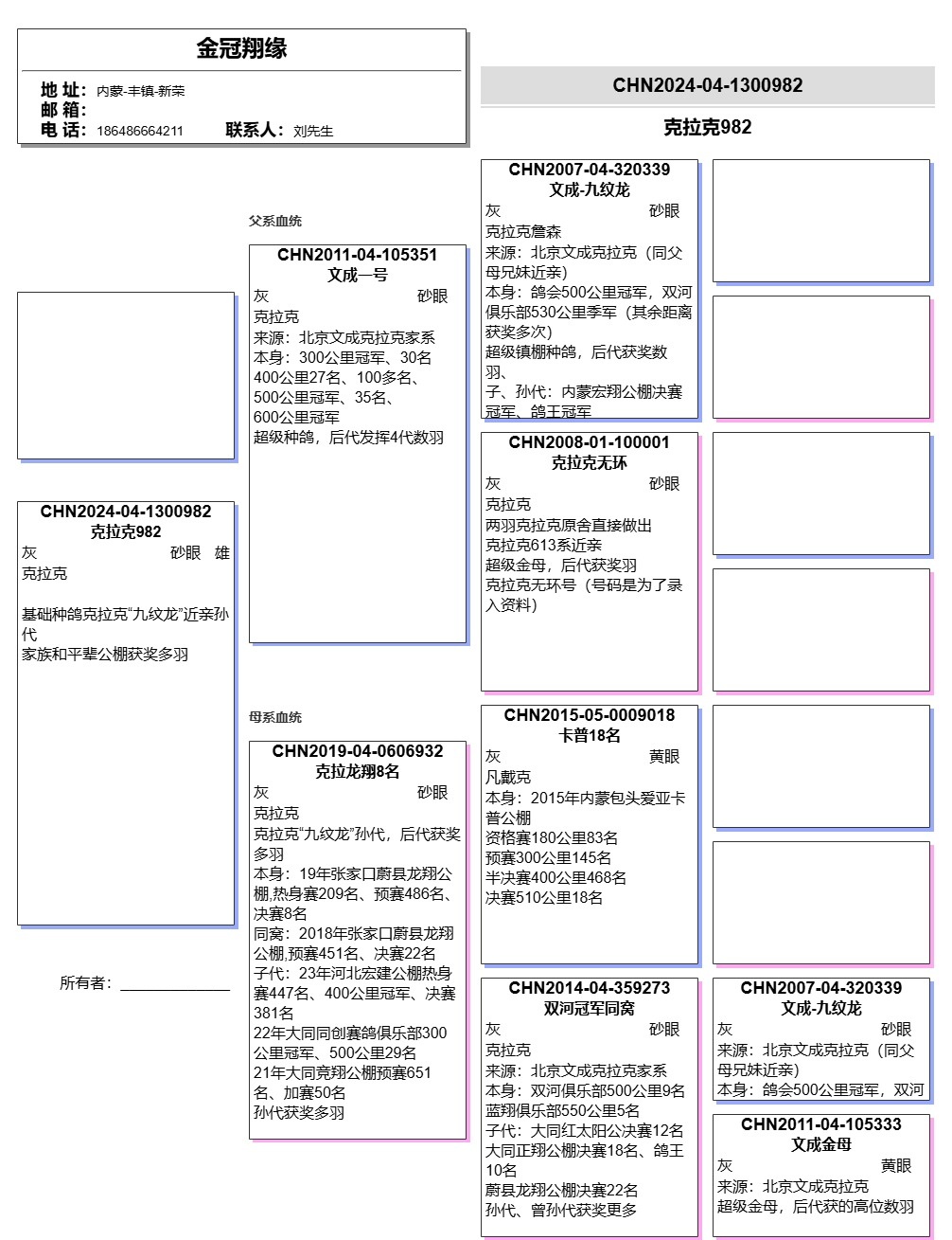 1597107 | 20-文成克拉克+公棚冠軍父女近親 | ¥200元 | 2次 |