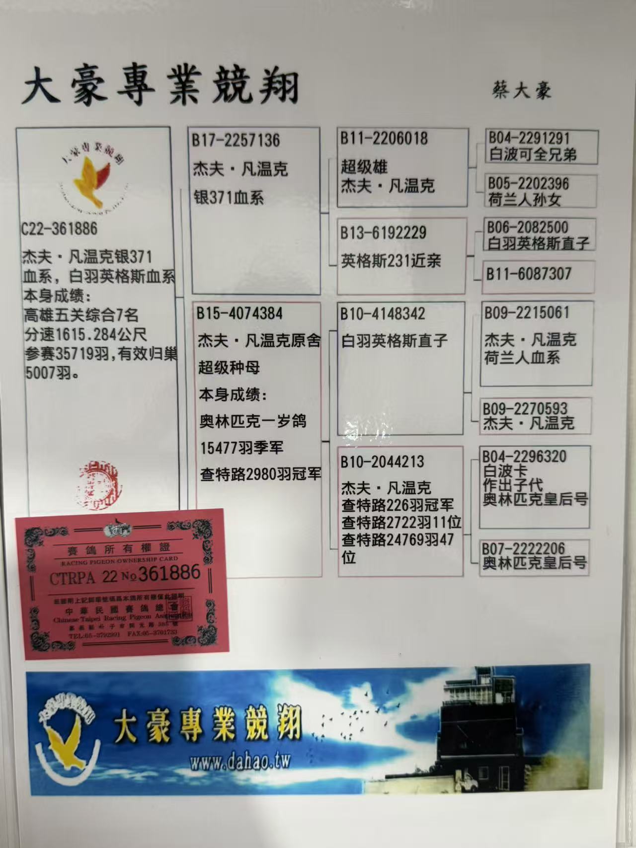 - 當前查看拍賣鴿:臺灣大豪專業(yè)競翔“杰夫·凡溫克銀371”