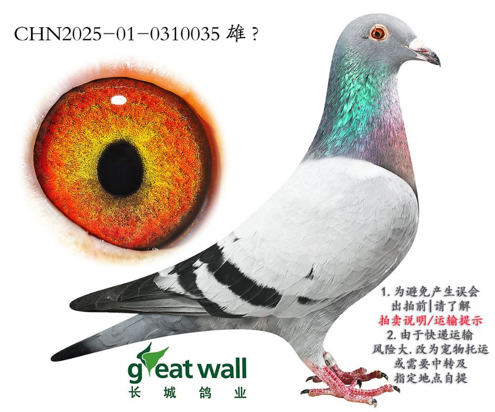 因拍賣鴿均是未做育過的種鴿或幼鴿,圖內(nèi)所標雌雄僅供參考,實際性別已實物為準。