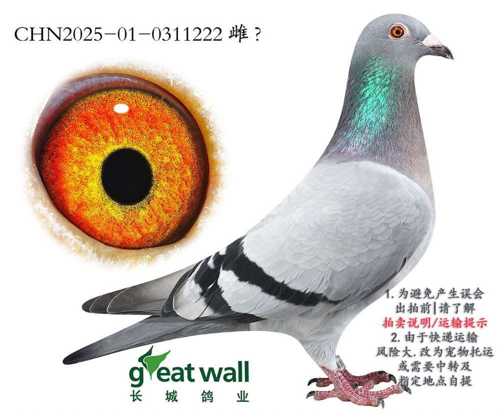 因拍賣鴿均是未做育過的種鴿或幼鴿,圖內(nèi)所標雌雄僅供參考,實際性別已實物為準。