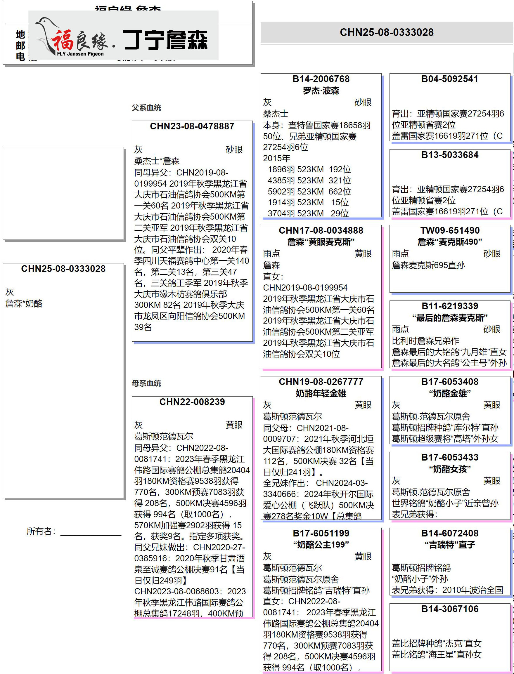 外祖母:“奶酪公主199”B17-6051199 奶酪小子近親曾孫