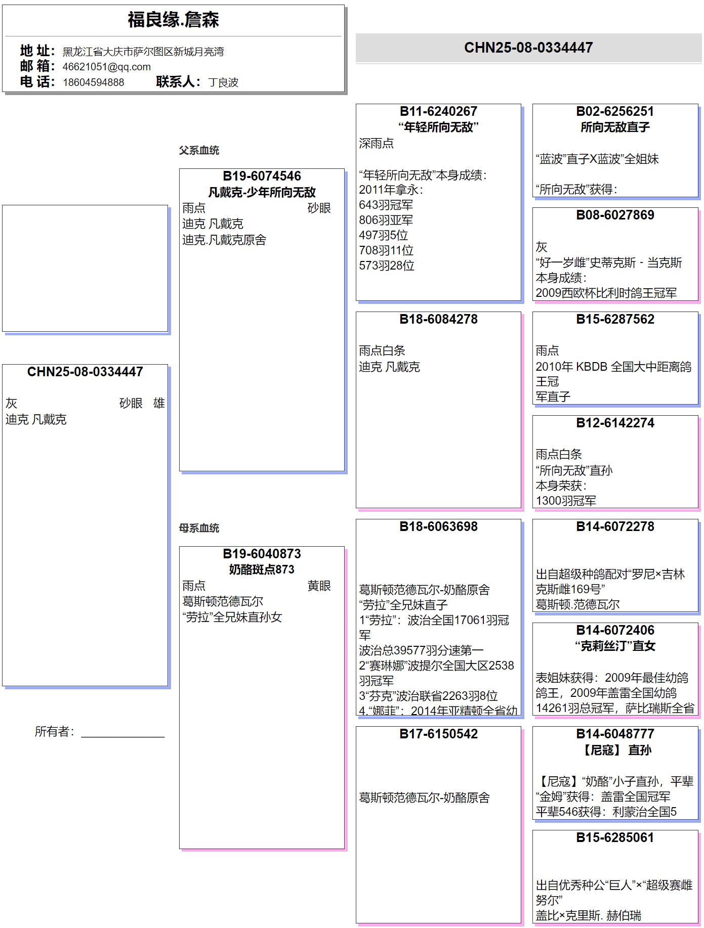 本身成績(jī):2009西歐杯比利時(shí)鴿王冠軍