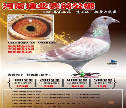 平輩鴿鴿王和冠軍多羽,該路鴿是速度和耐力的完美結(jié)合,