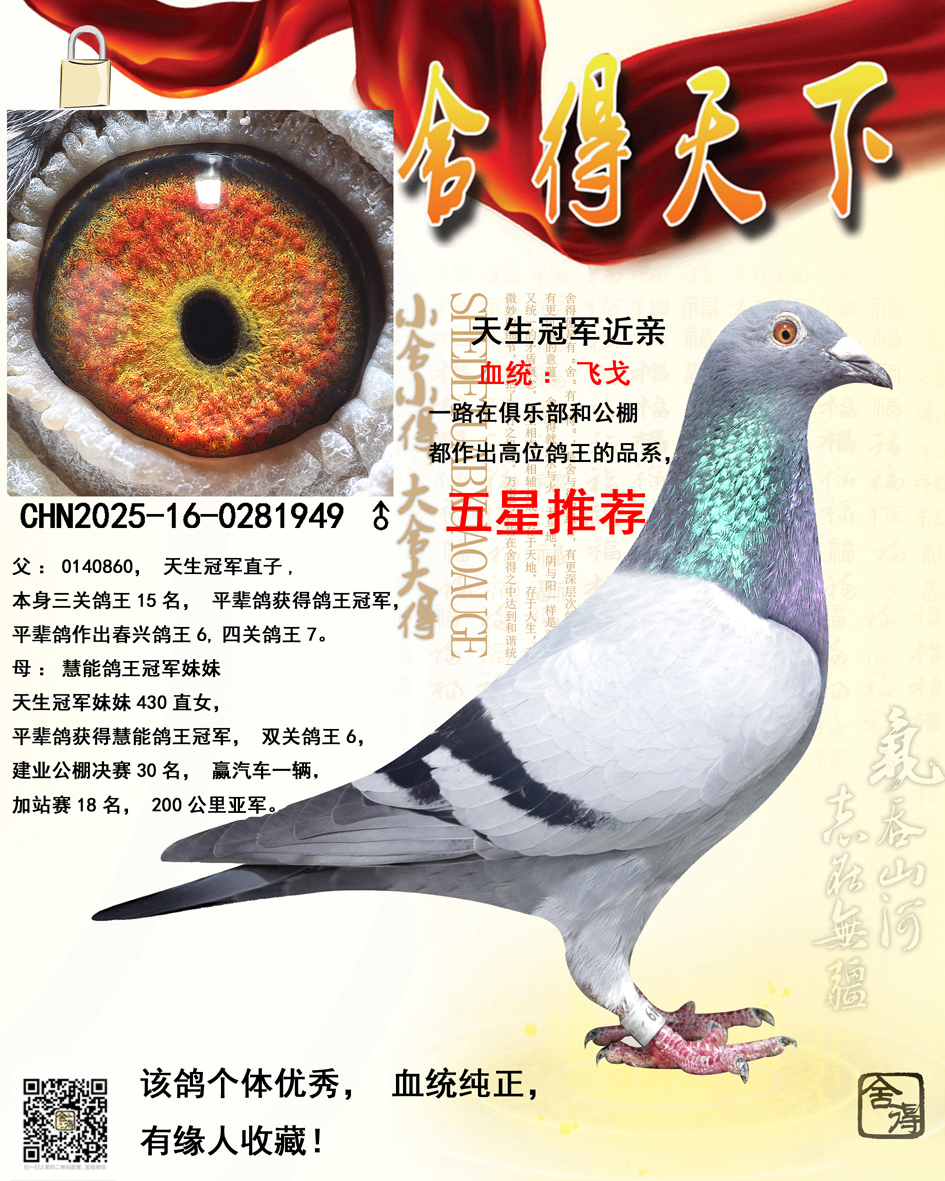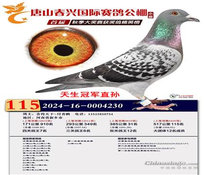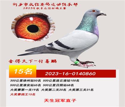 平輩鴿鴿王和冠軍多羽,該路鴿是速度和耐力的完美結(jié)合,