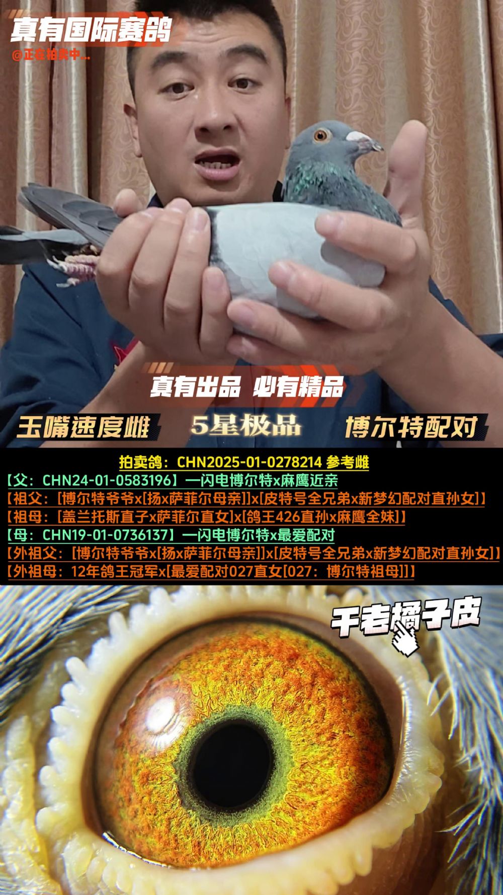 - 當前查看拍賣鴿:《玉嘴速度雌》博爾特配對近親