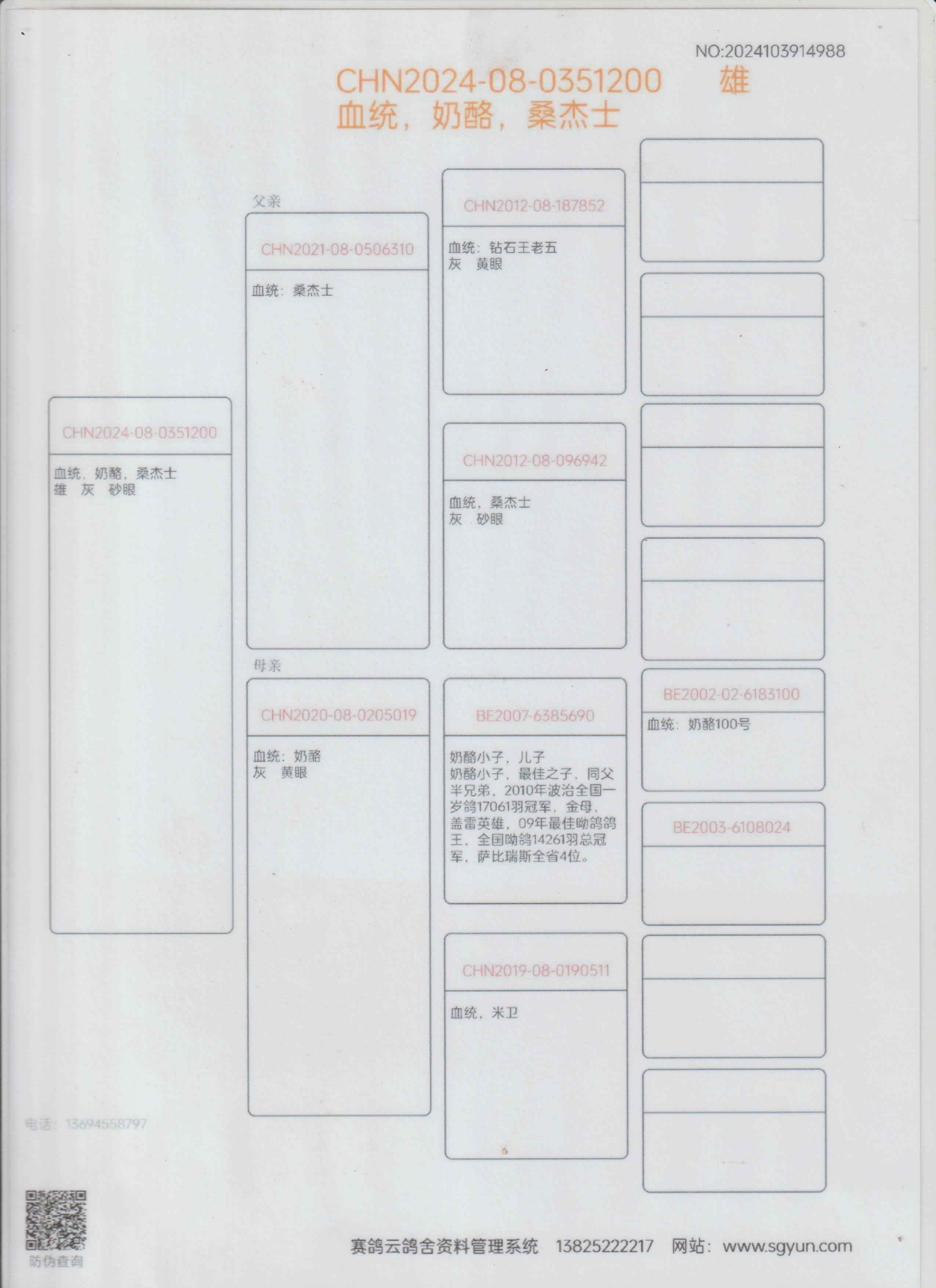 3、注明:請(qǐng)注意看種鴿和血統(tǒng)圖片,有的種鴿環(huán)卡丟失,有些獎(jiǎng)鴿無環(huán)卡和獎(jiǎng)狀和血統(tǒng),介意請(qǐng)勿出價(jià);