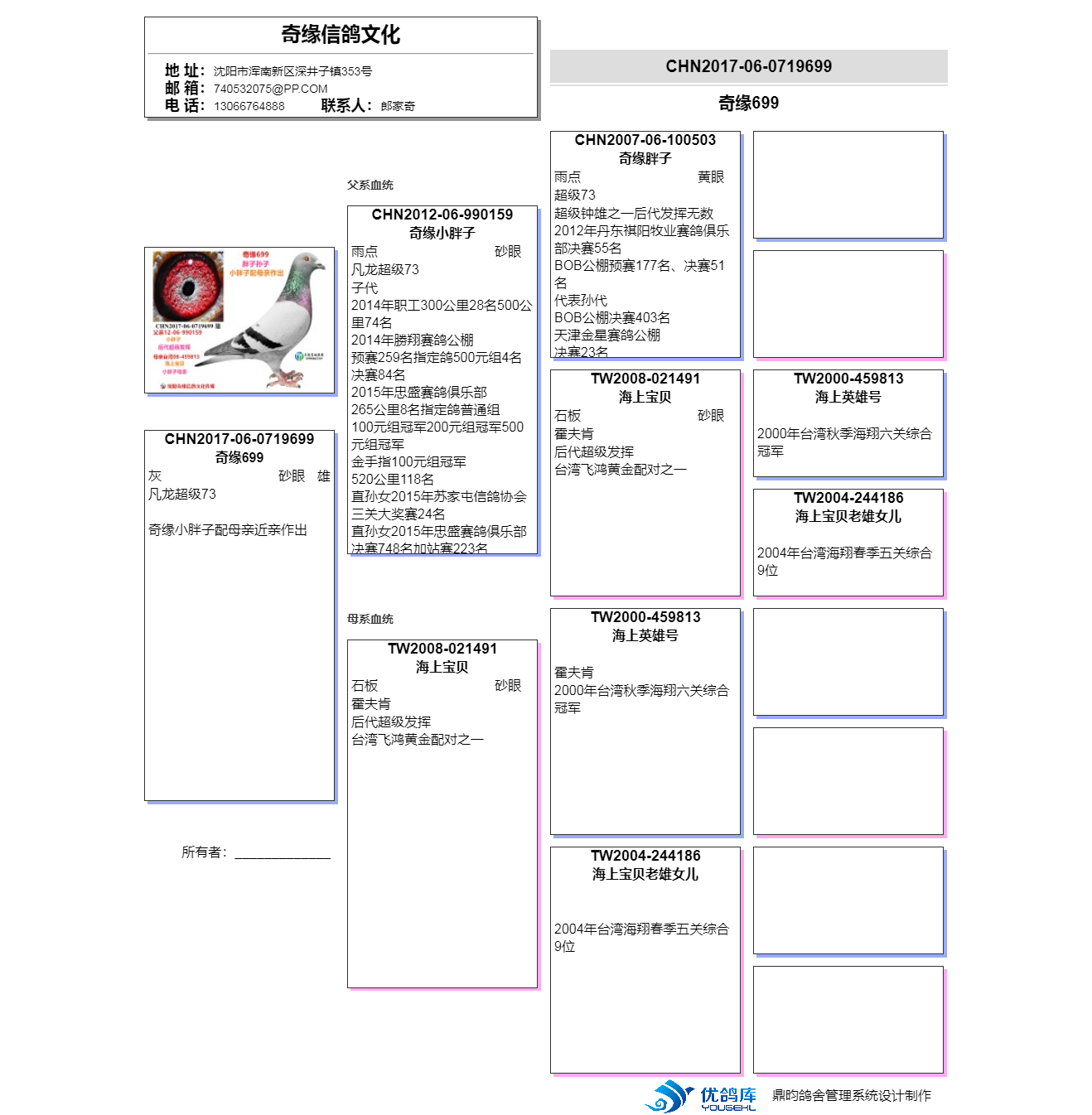 3、注明:請注意看種鴿和血統(tǒng)圖片,有的種鴿環(huán)卡丟失,有些獎鴿無環(huán)卡和獎狀和血統(tǒng),介意請勿出價;
