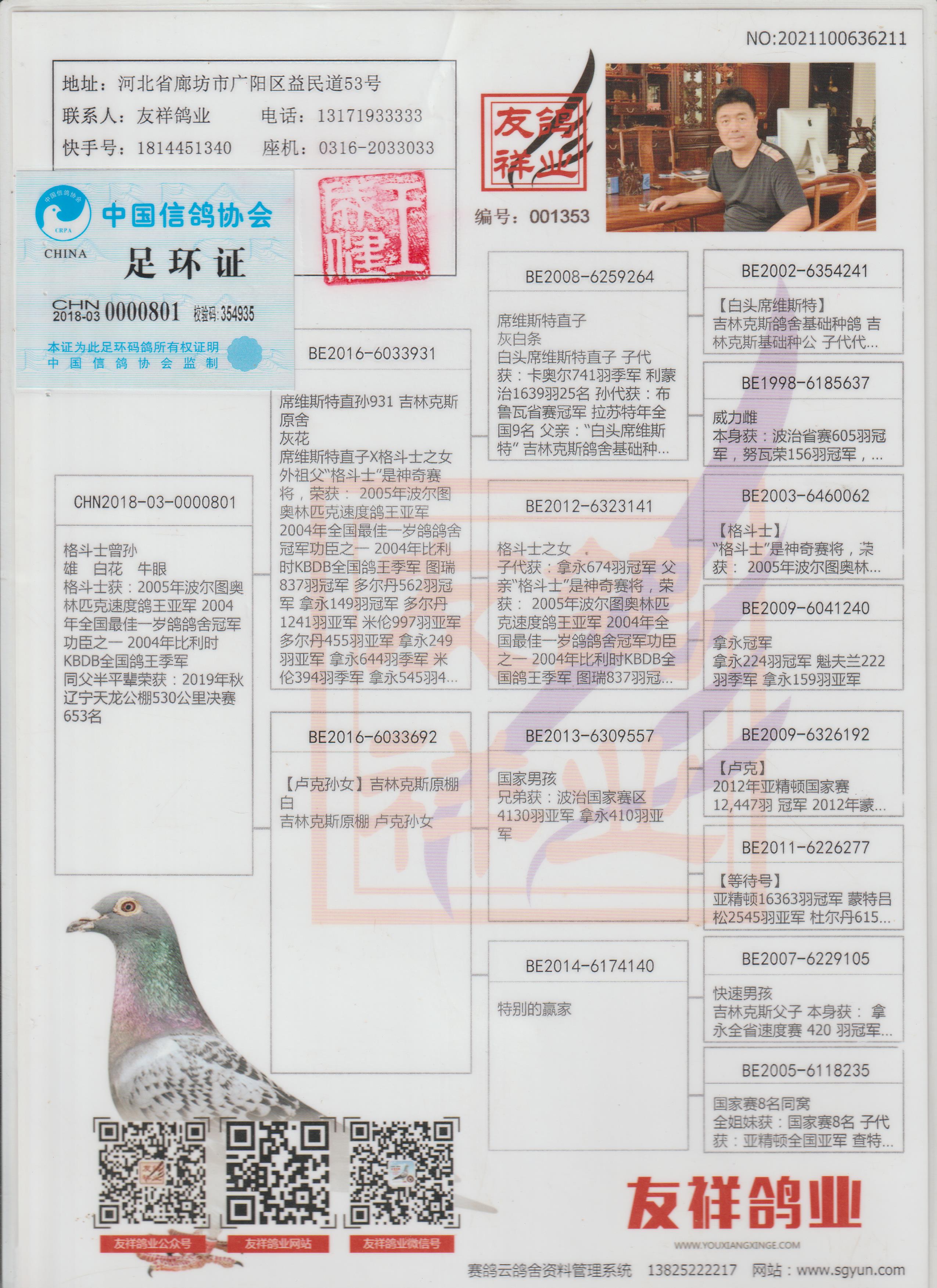 3、注明:請注意看種鴿和血統(tǒng)圖片,有的種鴿環(huán)卡丟失,有些獎鴿無環(huán)卡和獎狀和血統(tǒng),介意請勿出價;