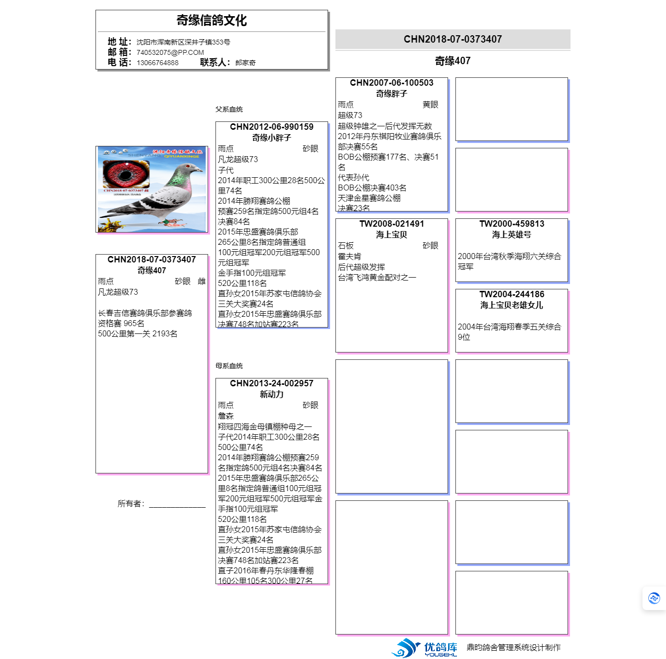 3、注明:請注意看種鴿和血統(tǒng)圖片,有的種鴿環(huán)卡丟失,有些獎鴿無環(huán)卡和獎狀和血統(tǒng),介意請勿出價;