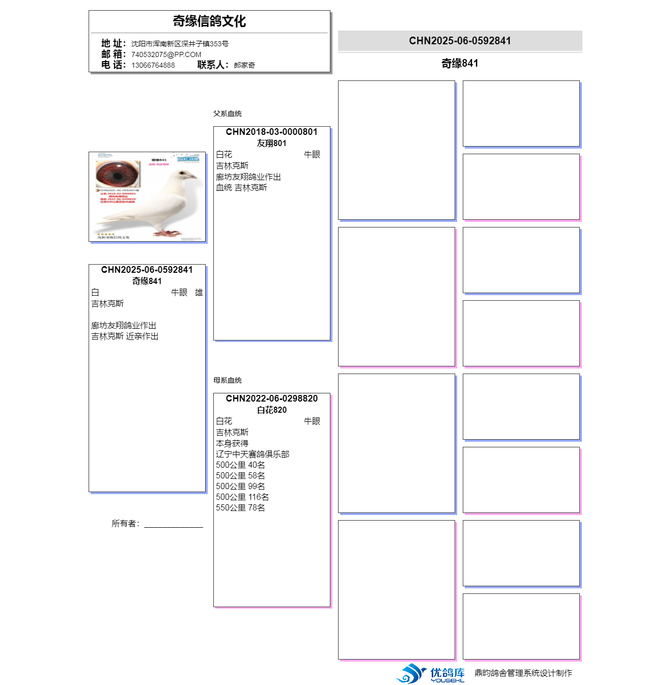 3、注明:請注意看種鴿和血統(tǒng)圖片,有的種鴿環(huán)卡丟失,有些獎鴿無環(huán)卡和獎狀和血統(tǒng),介意請勿出價(jià);