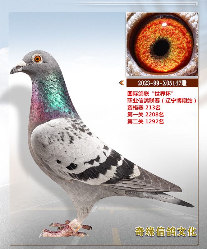 2、注明:鴿子在照片制作中,通常會(huì)使用Photoshop的圖片翻轉(zhuǎn)功能,造成視覺(jué)上足環(huán)位置的顛倒(左右腳互換),鴿子足環(huán)的位置以實(shí)物為準(zhǔn);