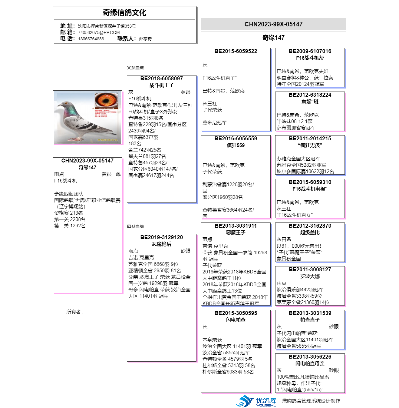 3、注明:請(qǐng)注意看種鴿和血統(tǒng)圖片,有的種鴿環(huán)卡丟失,有些獎(jiǎng)鴿無(wú)環(huán)卡和獎(jiǎng)狀和血統(tǒng),介意請(qǐng)勿出價(jià);
