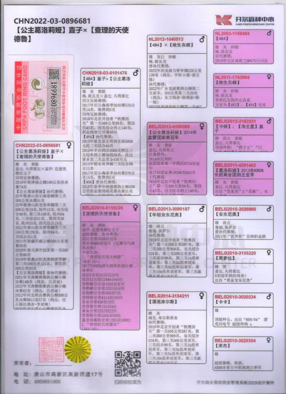 2022年河北明會(huì)賽鴿公棚決賽500公里37名, 雙關(guān)125名,三關(guān)271名(鴿友:任丘露絲鴿舍-李亞峰)