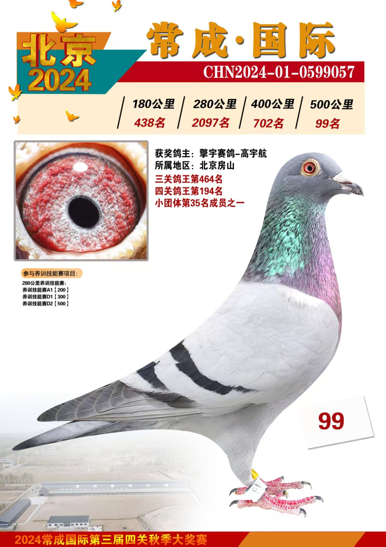 北京常成國際賽鴿公棚280公里熱身賽2097名;參與指定:1000元;