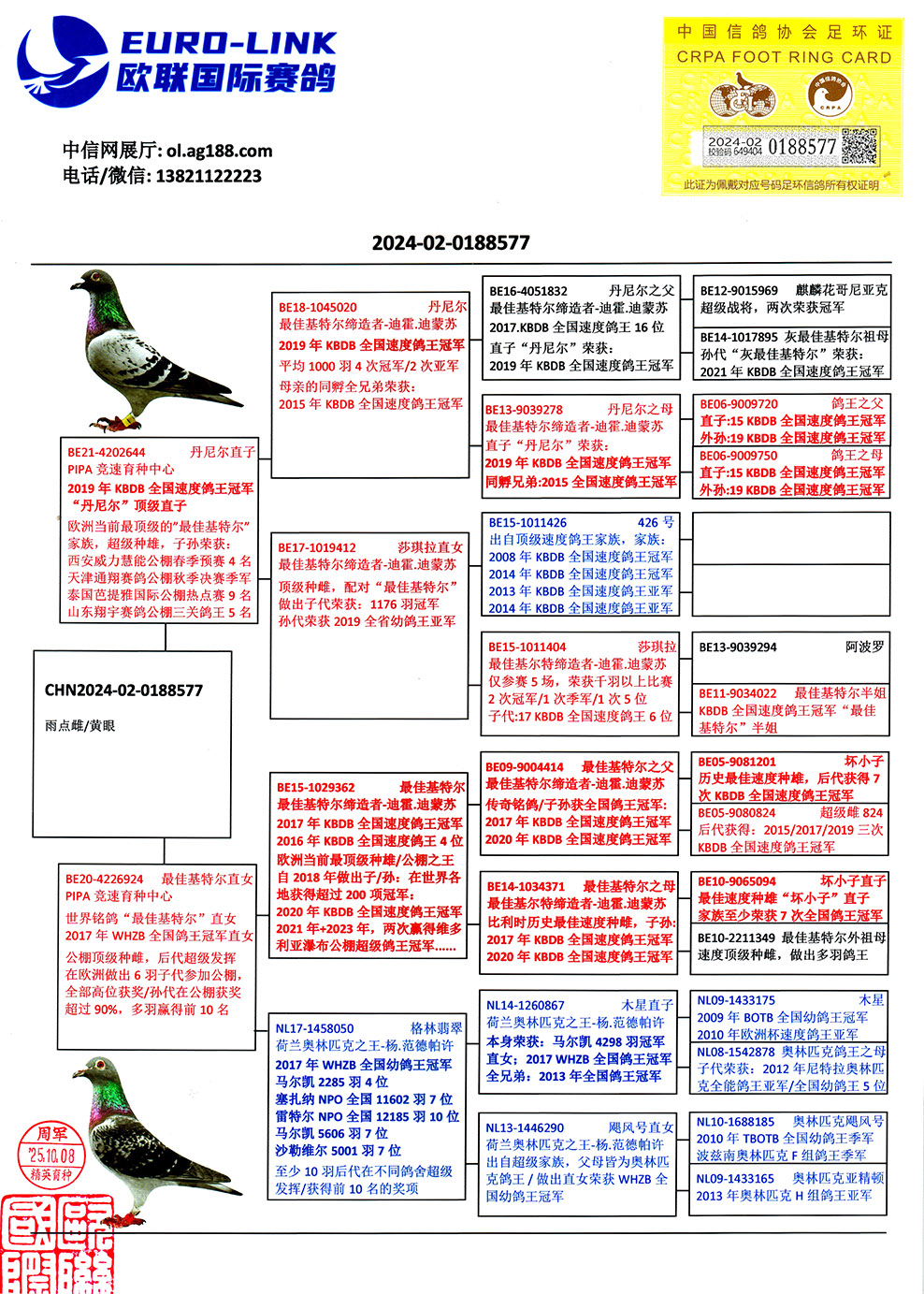 1598655 | 英格斯世界銘鴿“178”近親孫女 | ¥4200元 | 4次 |