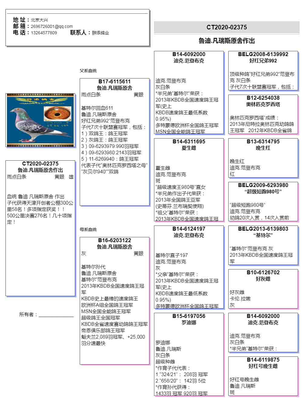 1598757 | 開爾鴿王血系凡登布克026 | ¥300元 | 1次 |