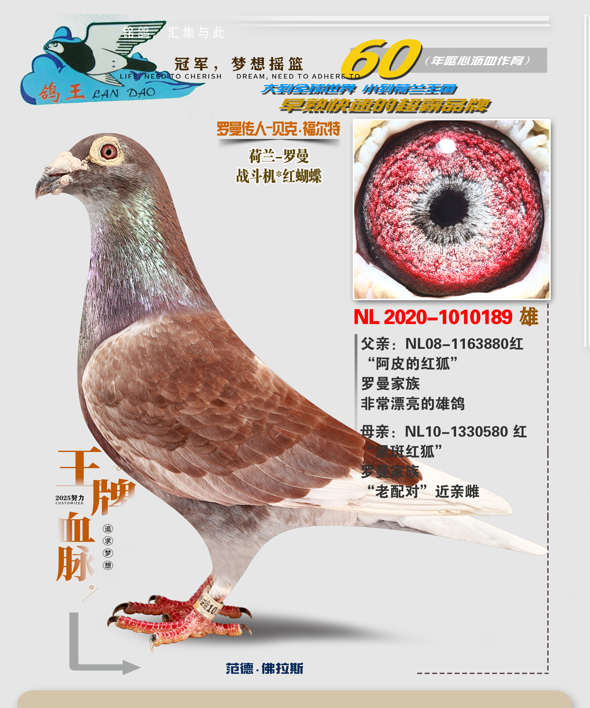 感謝齊魯良父子鴿業(yè)劉總支援巴賽羅那血統(tǒng)配我家彼得曼德斯血統(tǒng),在今年四關(guān)鴿王大賽斬獲5名,此鴿也是去年800特比小號(hào)只取10名的情況下飛進(jìn)10名,獲獎(jiǎng)金一萬(wàn)元!再次感謝劉總。!