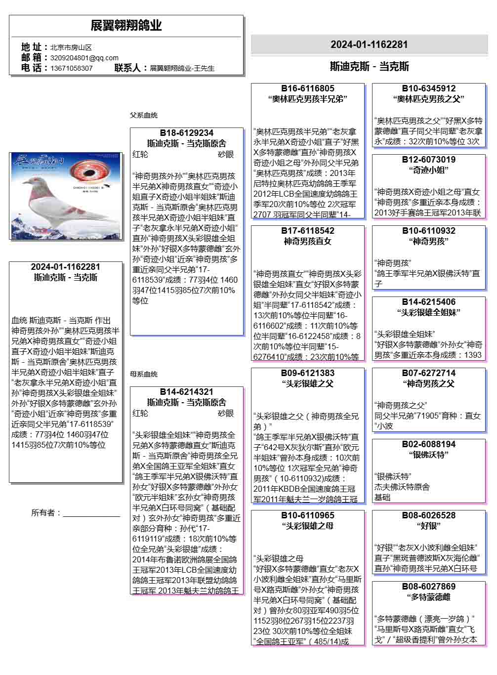 1598952 北京凱翔公棚三關(guān)鴿王9位 ¥0元 0次