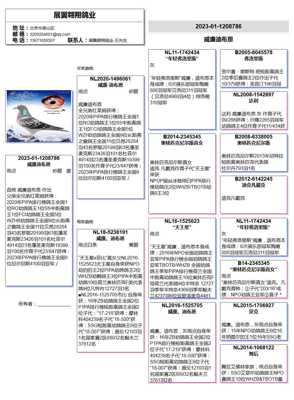 - 當前查看拍賣鴿:威廉迪布恩奧林匹克尼爾斯外孫作出786