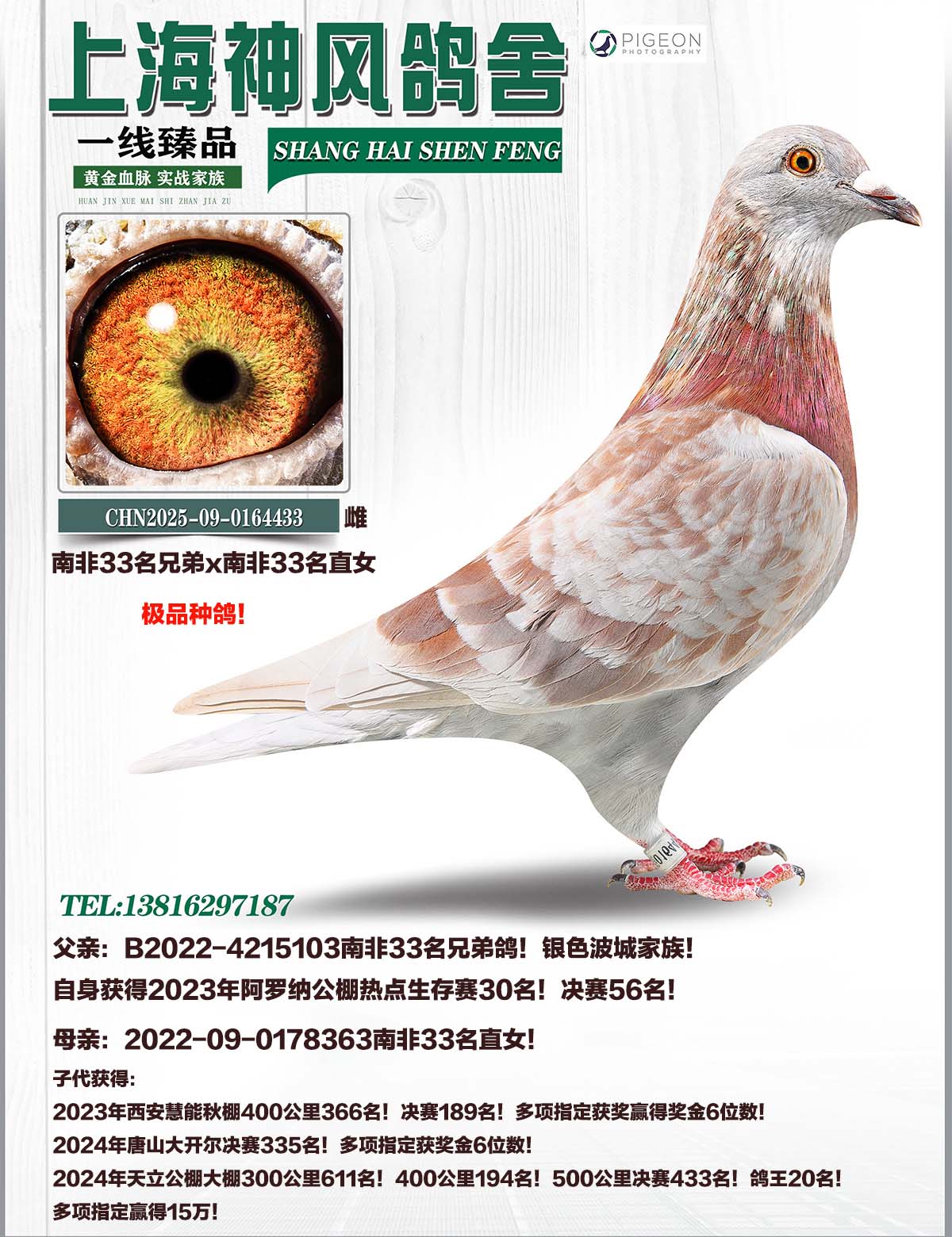 父親:B2022-4215103南非33名兄弟鴿!銀色波城家族!