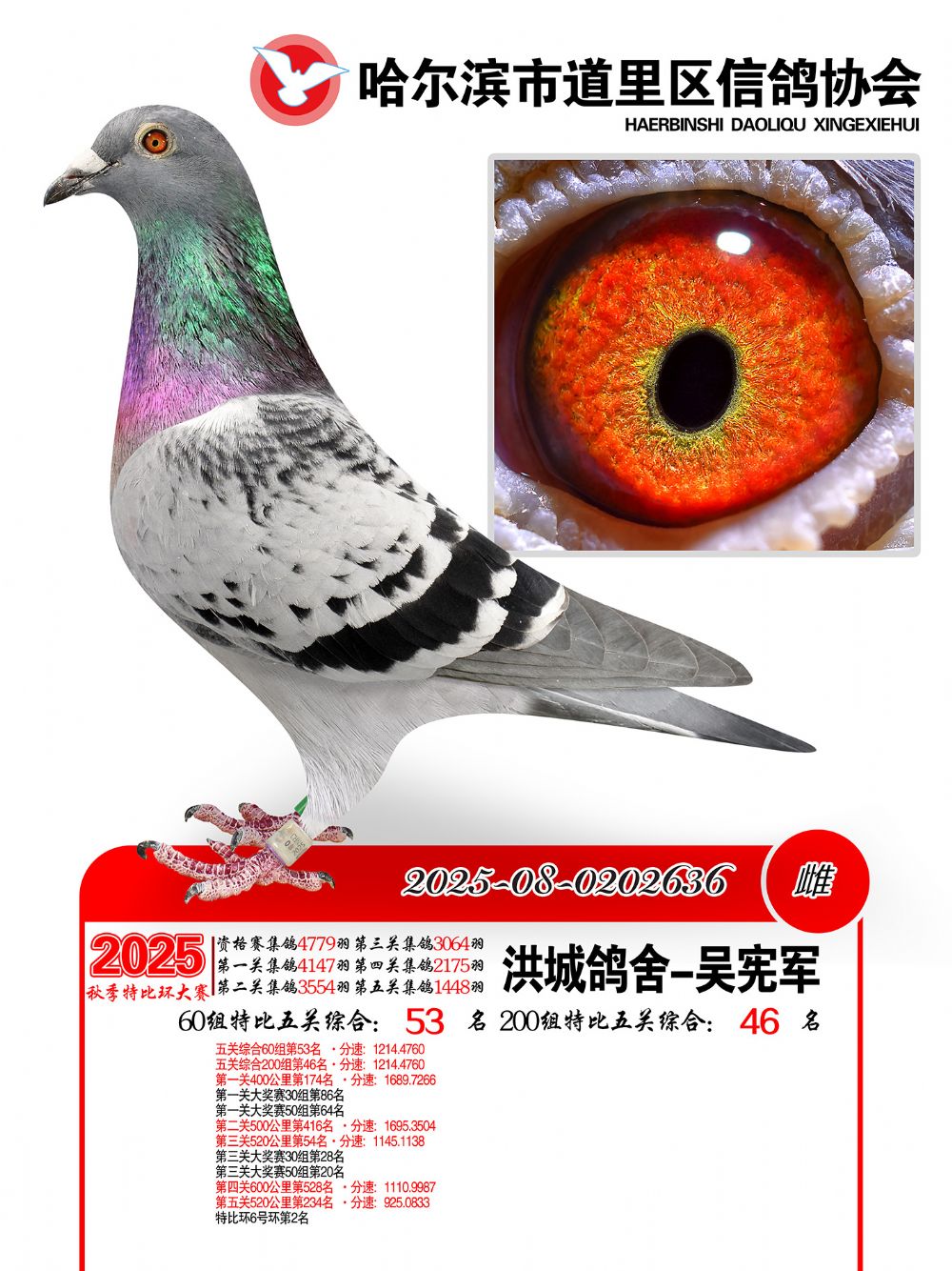 - 當前查看拍賣鴿:道里五關(guān)鴿王60組53名(200組46名