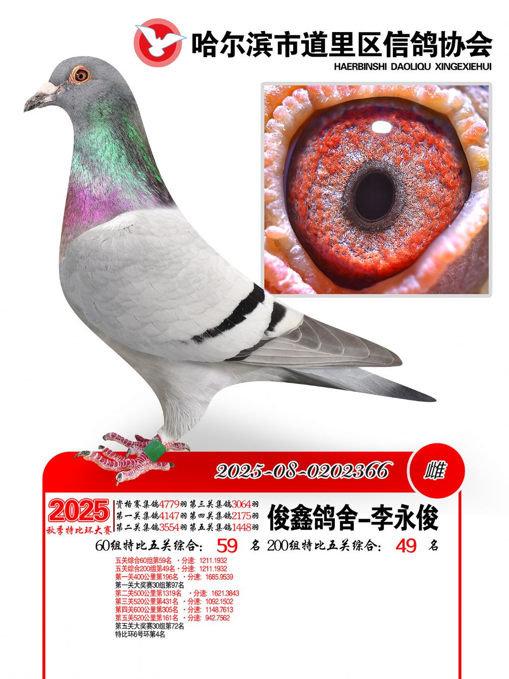 - 當前查看拍賣鴿:道里五關鴿王60組59名(200組49名