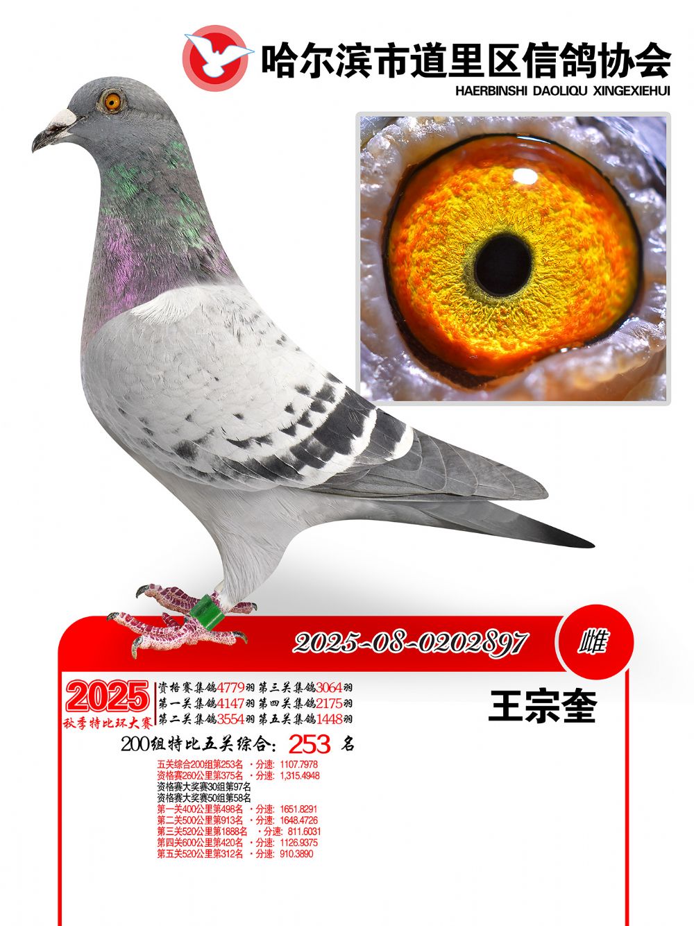 道里五關(guān)鴿王200組253名