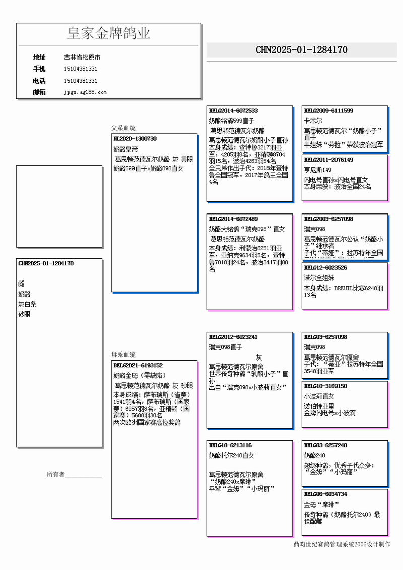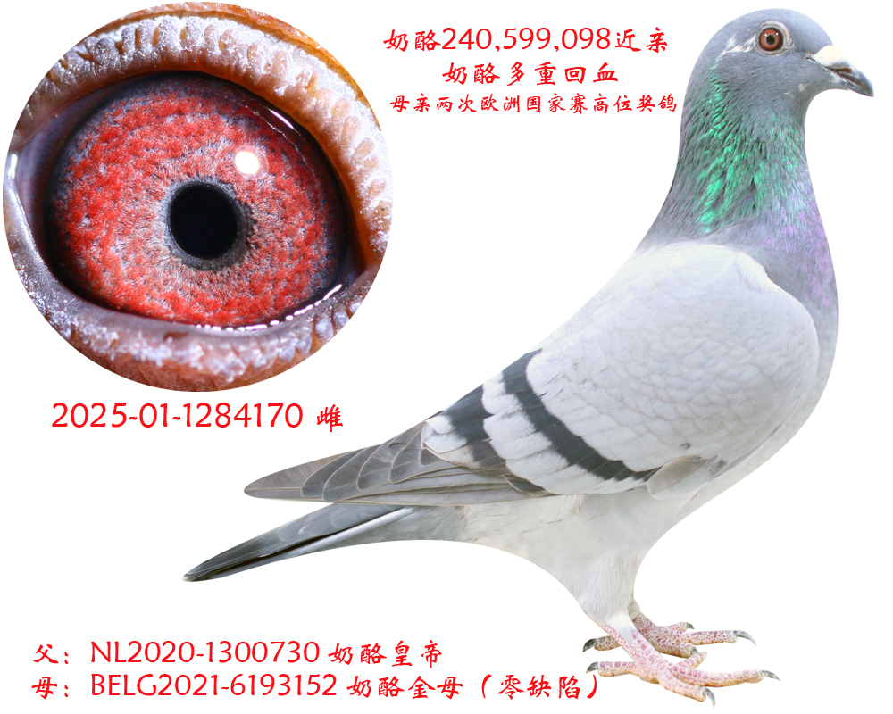 父母均為本舍高價(jià)引進(jìn),母親更是兩次國(guó)家賽高位獎(jiǎng)鴿,歐洲稱為零缺陷