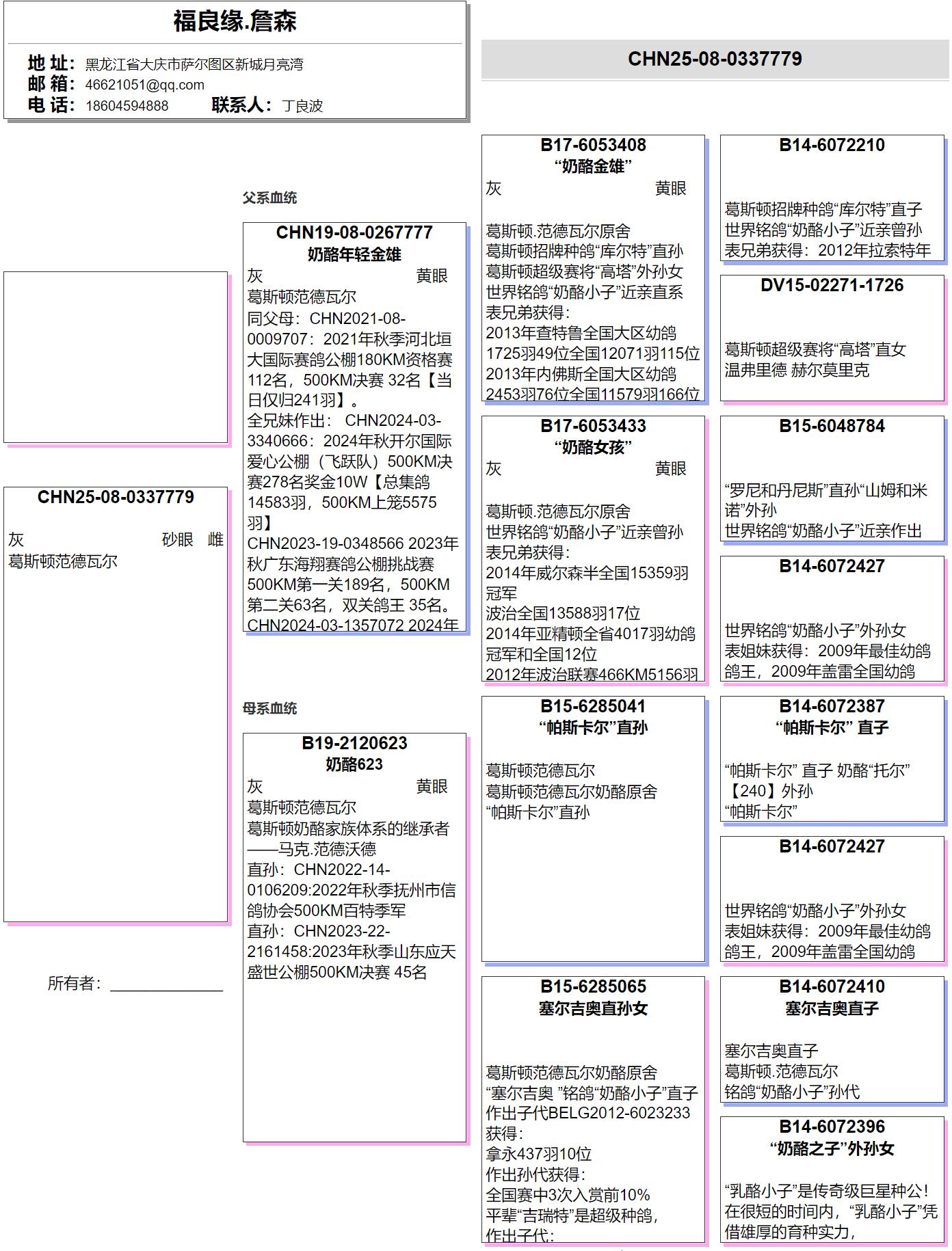 曾祖母:B14-6072427 世界銘鴿“奶酪小子”外孫女