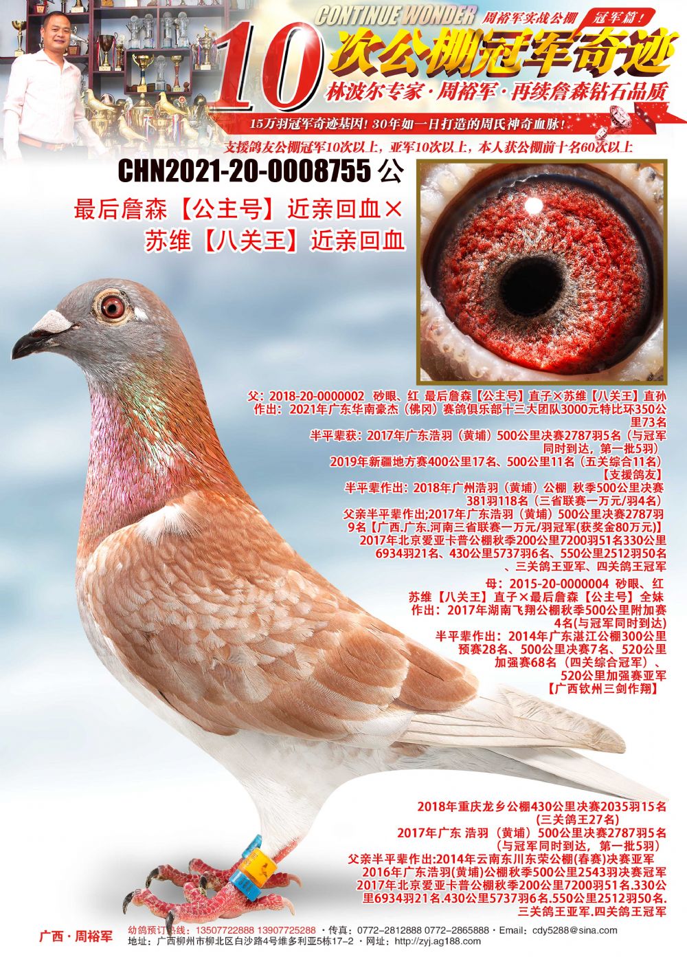 2015年廣西柳州市←→北海市←→合浦市三市等距離聯(lián)賽410公里總冠軍(分速1306/分)、同窩獲本場季軍(夢幻連隊功臣之一)