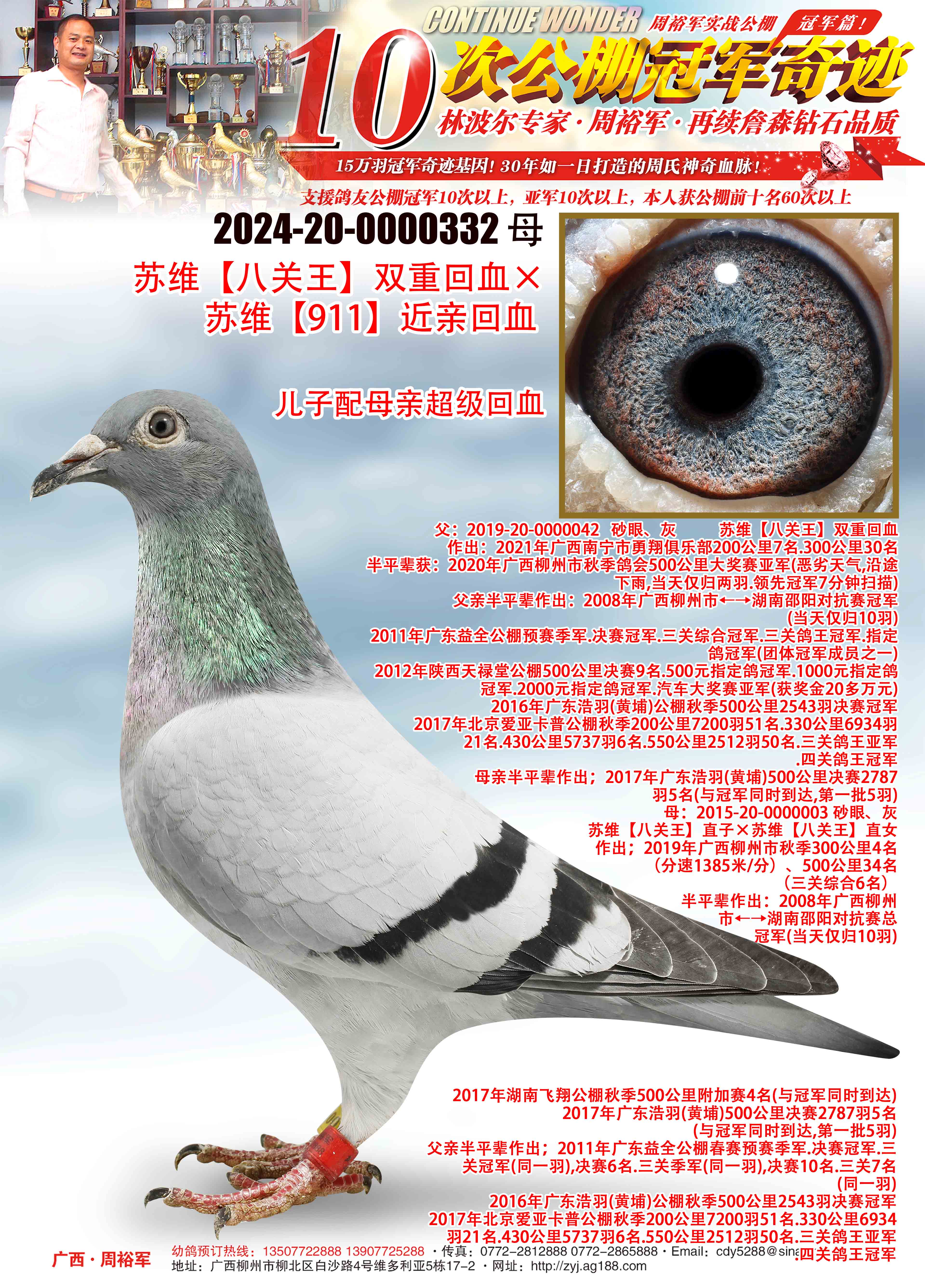 2024-20-0000332 砂眼、灰 ♀ 蘇維【八關(guān)王】雙重回血×蘇維【911】近親回血